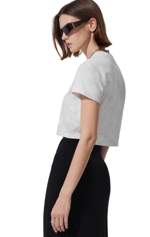This cropped tee easily complements a variety of outfits. Pair it with wide-leg trousers for a modern silhouette, style it with high-waisted skirts for a feminine look, or wear it with denim for a classic casual outfit.